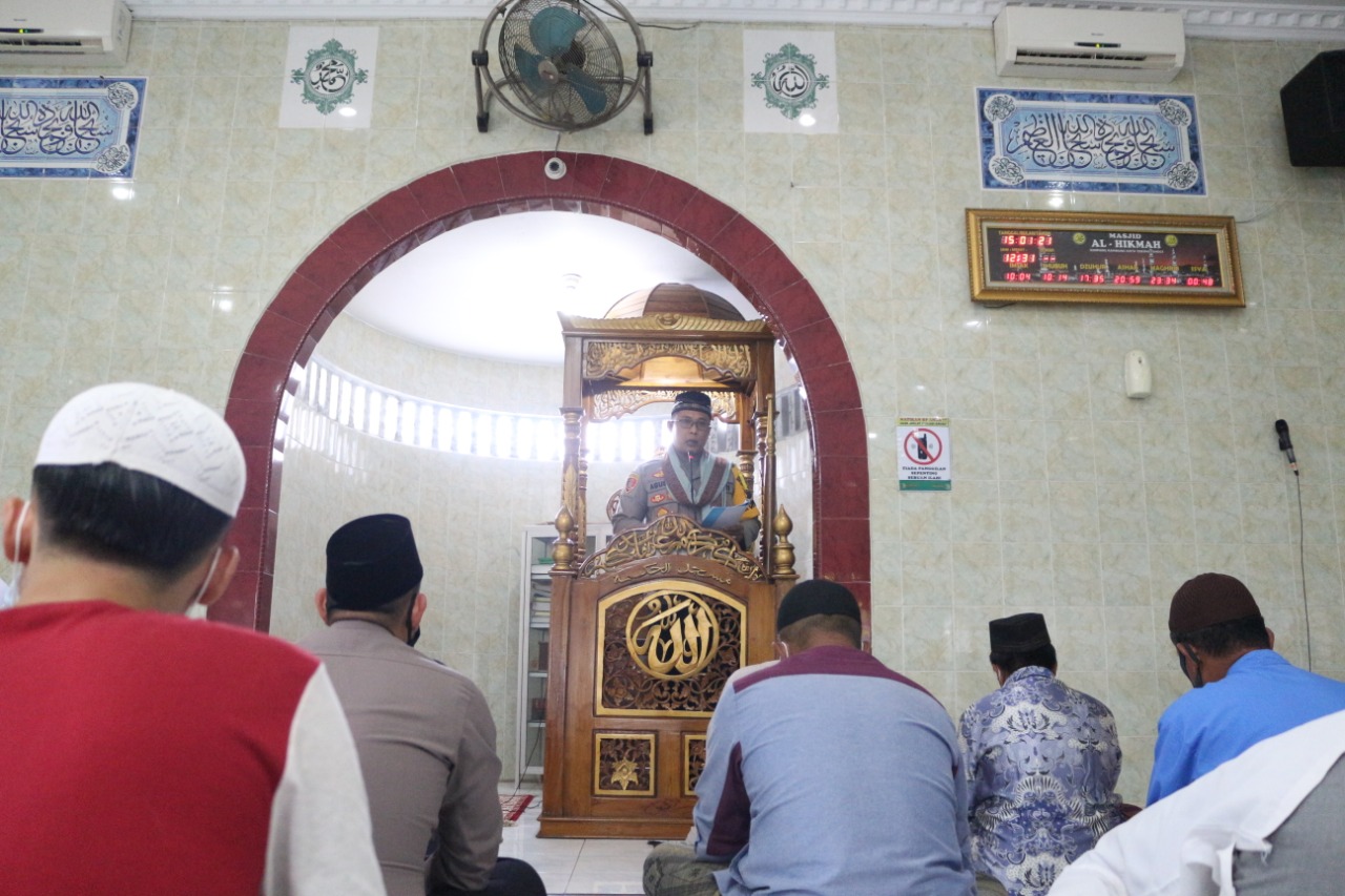 TEBINGTINGGI (Kliik.id) - Kapolres Tebingtinggi AKBP Agus Sugiyarso didampingi personel melaksanakan Sholat Jumat di Mesjid Al-Hikmah Jalan Pahlawan, Jumat (15/1/2021). Sholat Jumat ini menghadirkan Penceramah Ridwan Sam.